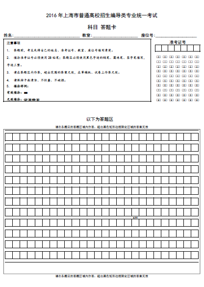 為確保上海市普通高校編導類專業統考評卷質量,使評分更加公平公正,2017年編導類專業統考科目全部采用網上閱卷的方式。考生作答時須注意以下事項: