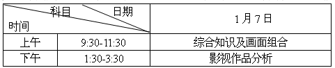 考生憑《專業(yè)考試證》、第二代居民身份證于2016年12月30日至31日到湖南藝術職業(yè)學院(長沙市岳麓區(qū)麓山南路153號)報到繳費,考試時間為2017年1月5日至7日,其中筆試時間統(tǒng)一安排如下: