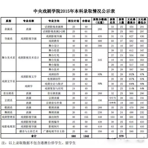 中戲2015年各專業(yè)發(fā)證數(shù)、分?jǐn)?shù)線及錄取最后名次