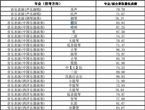 浙江音樂學院2018年全日制本科招生專業(綜合)錄取最低成績