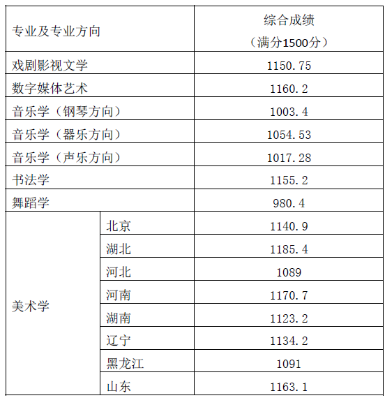 2018年北京師范大學藝術類各專業(yè)綜合成績分數(shù)線 注:綜合成績?yōu)楦呖嘉幕n成績(750分制)與校考專業(yè)課成績之和。