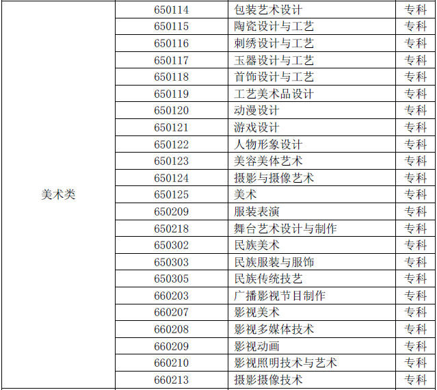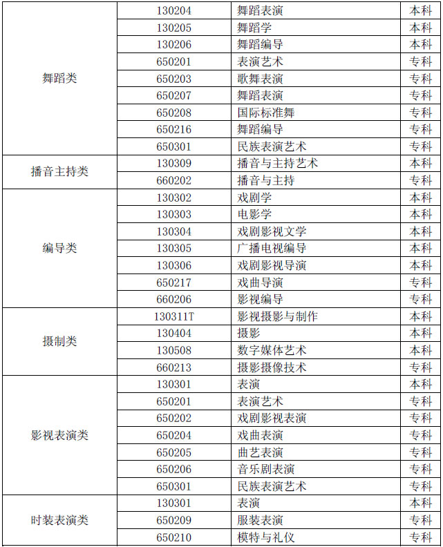 (一)《普通高等學(xué)校本科專業(yè)目錄(2012 年)》中“藝術(shù)學(xué)門類”下設(shè)各專業(yè),以及《普通高等學(xué)校高等職業(yè)教育(專科)專業(yè)目錄(2015 年)》中“藝術(shù)設(shè)計類”“表演藝術(shù)類”下設(shè)各專業(yè)和“民族文化類”“廣播影視類”等部分專業(yè),可編制藝術(shù)類招生計劃。