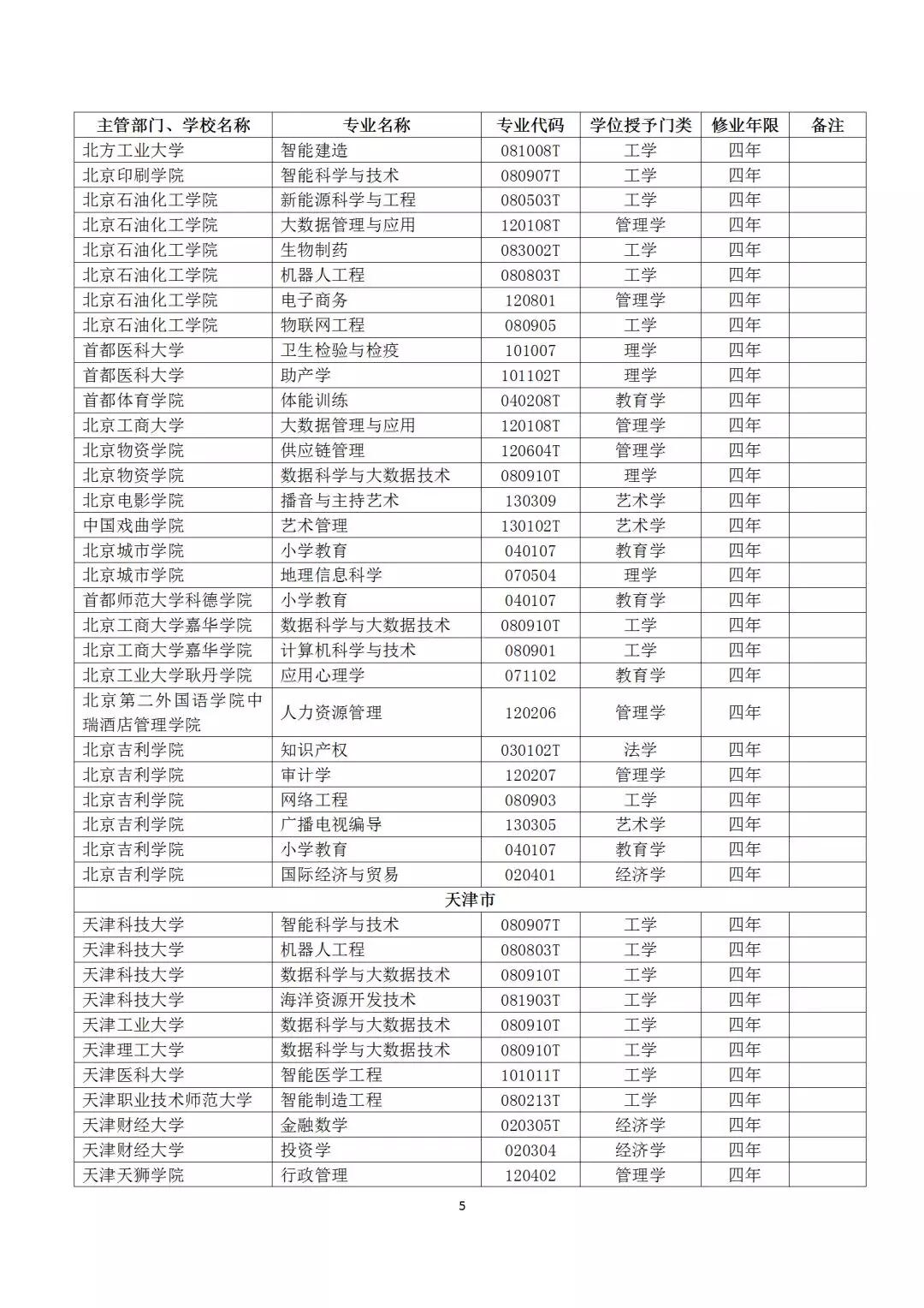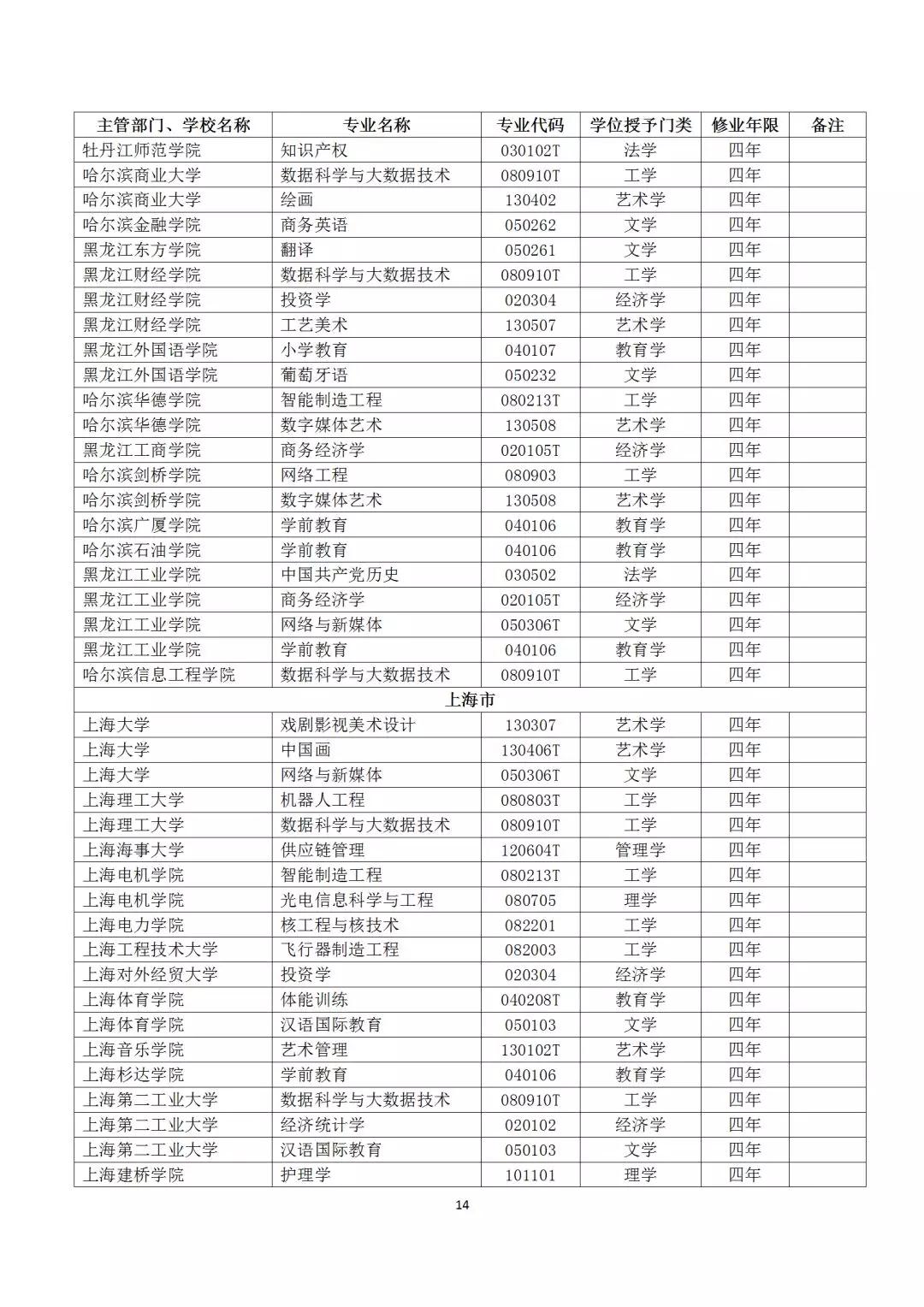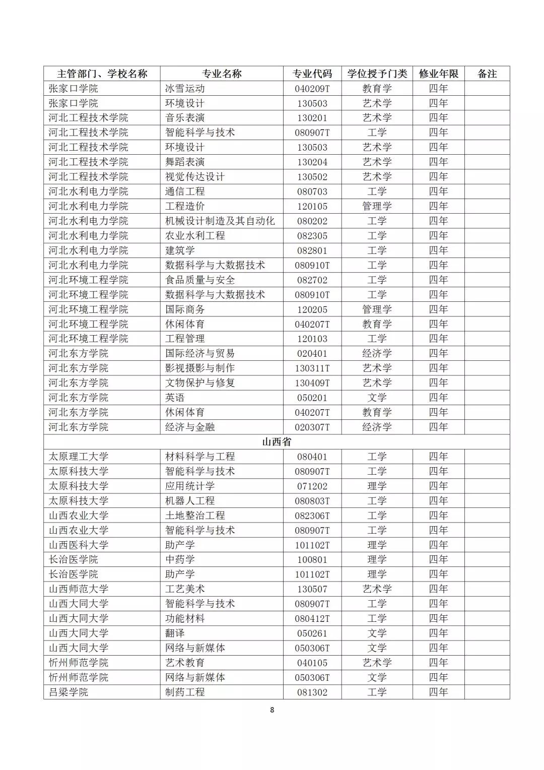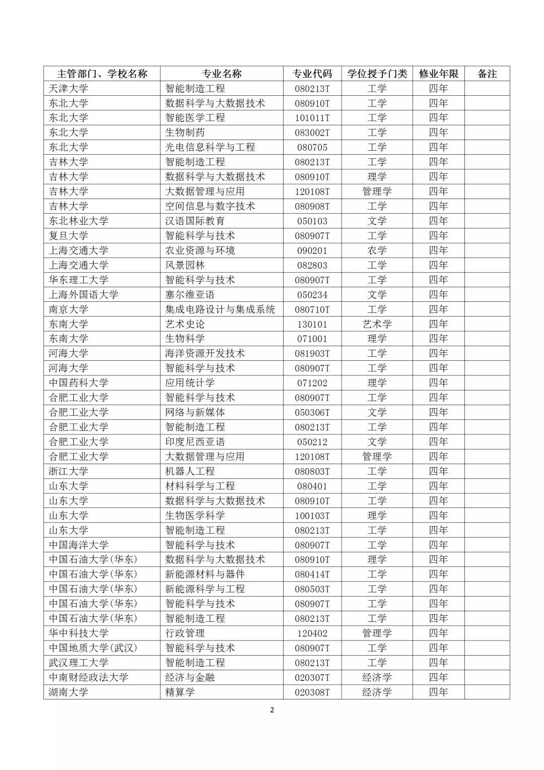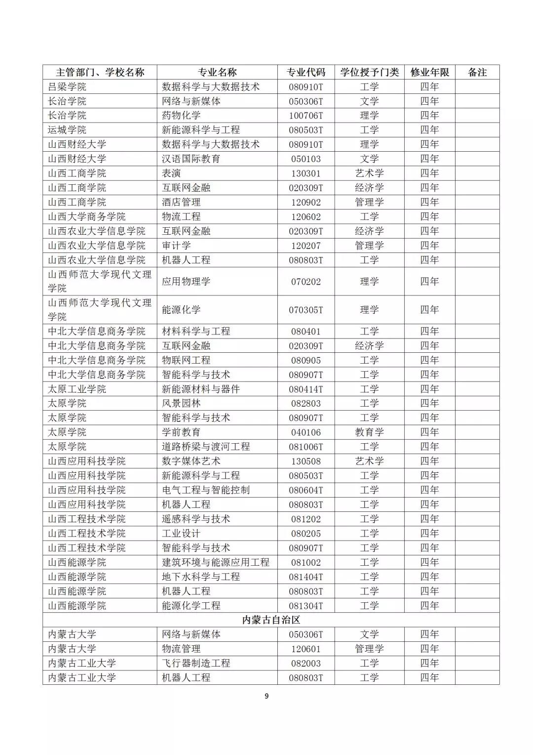 教育部公布2018年普通高校本科專業備案和審批結果的通知