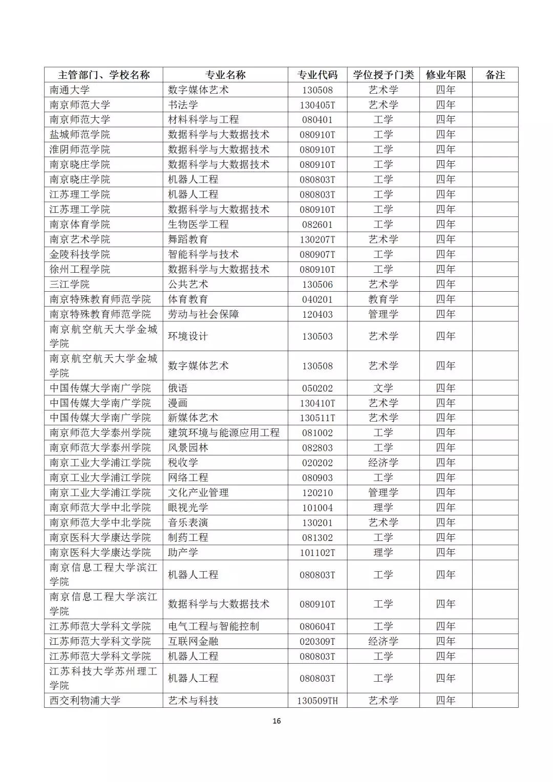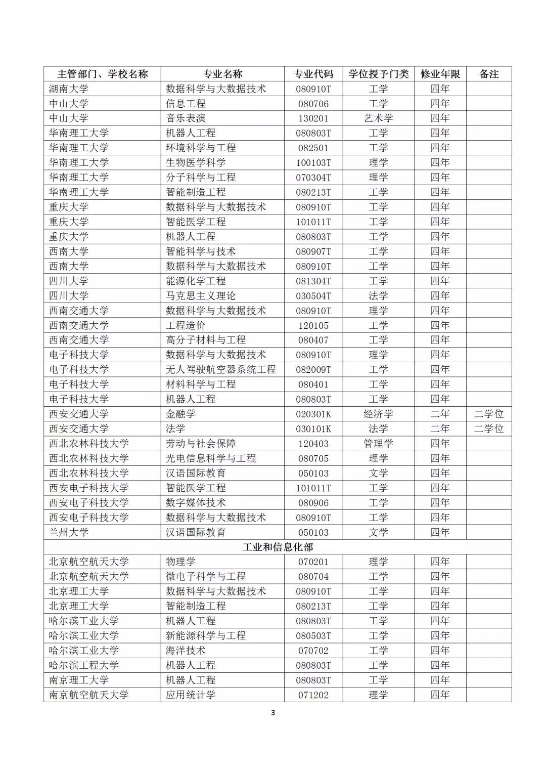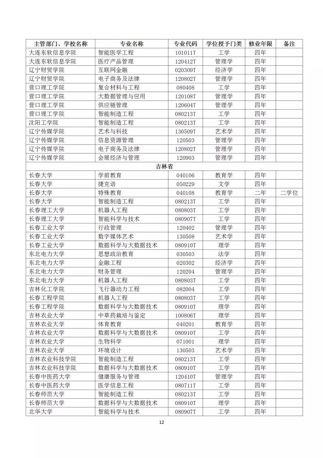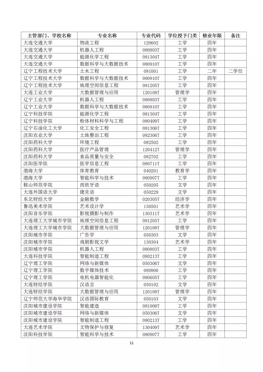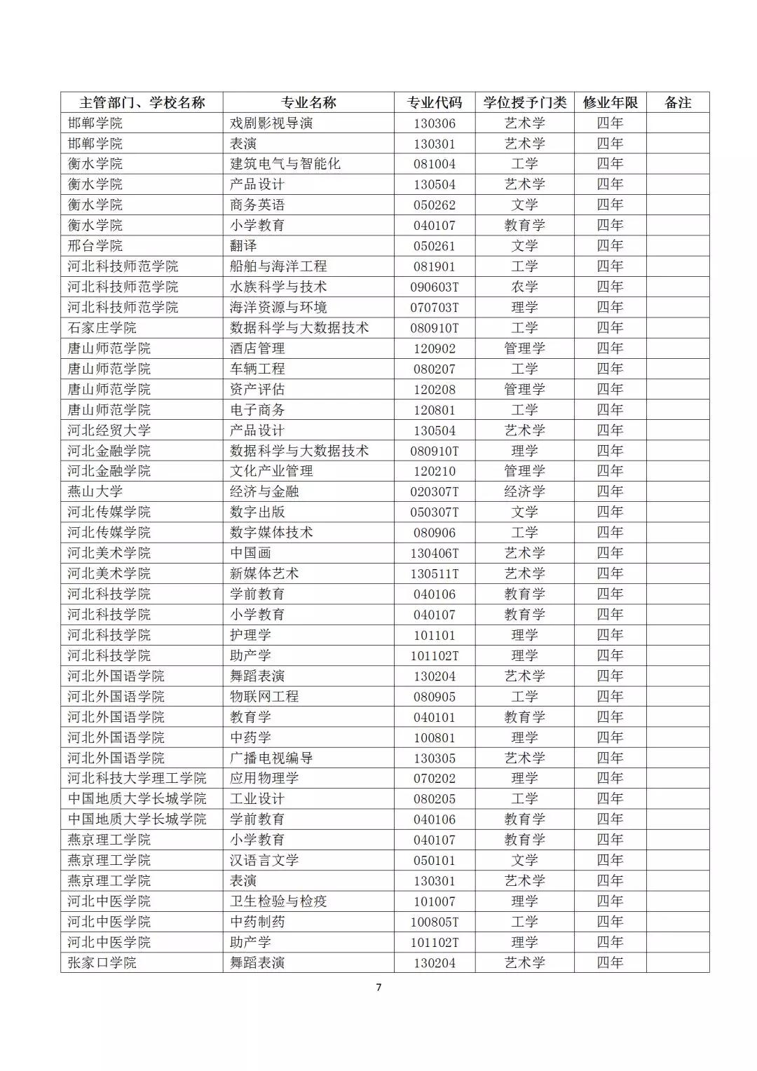 教育部公布2018年普通高校本科專業備案和審批結果的通知