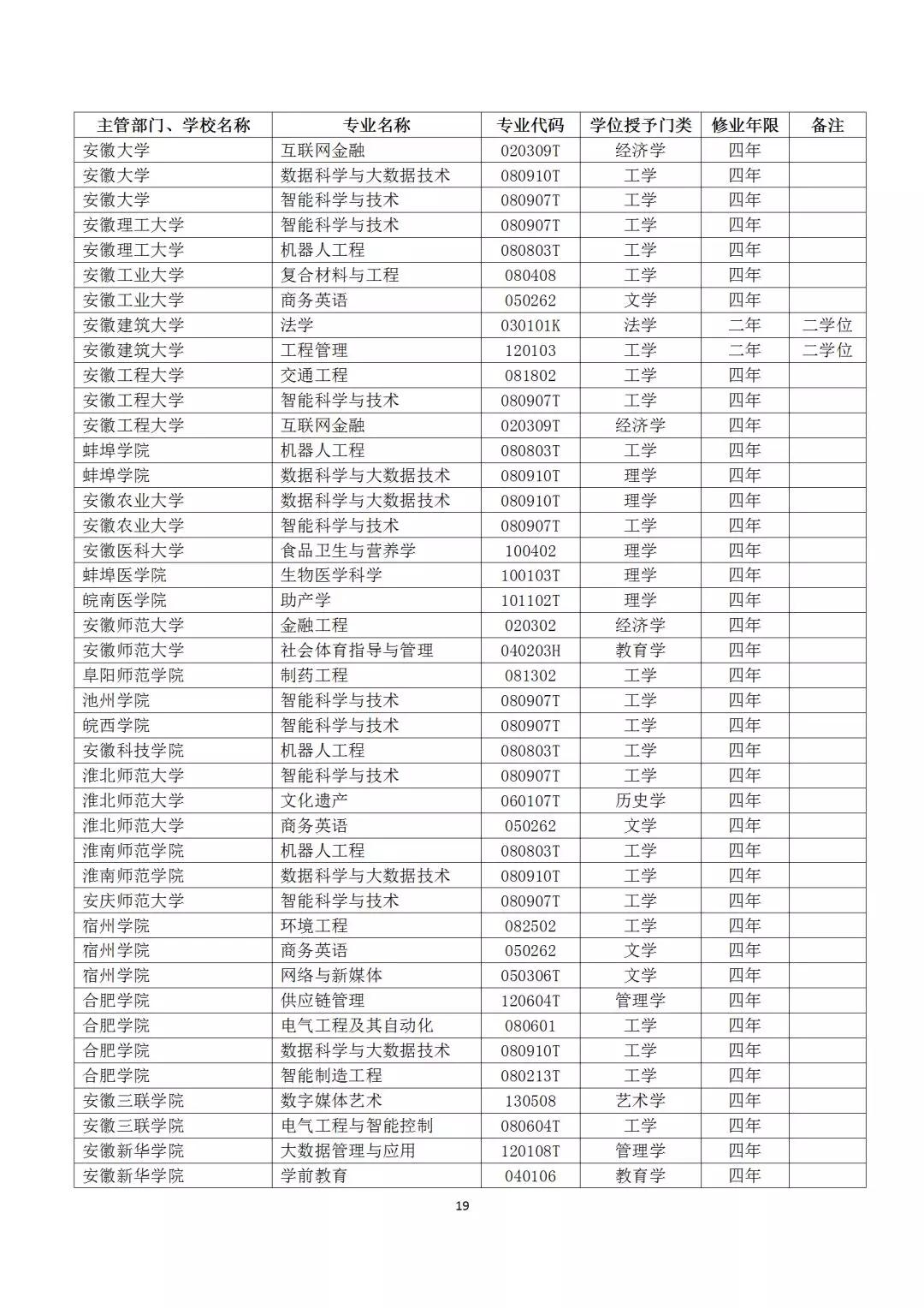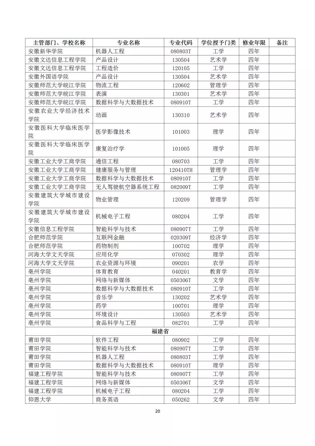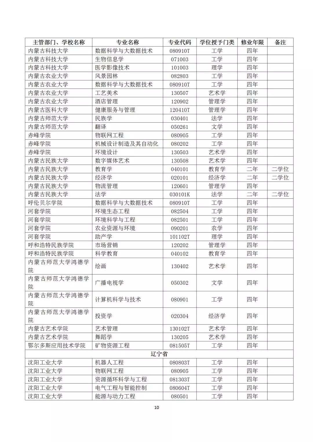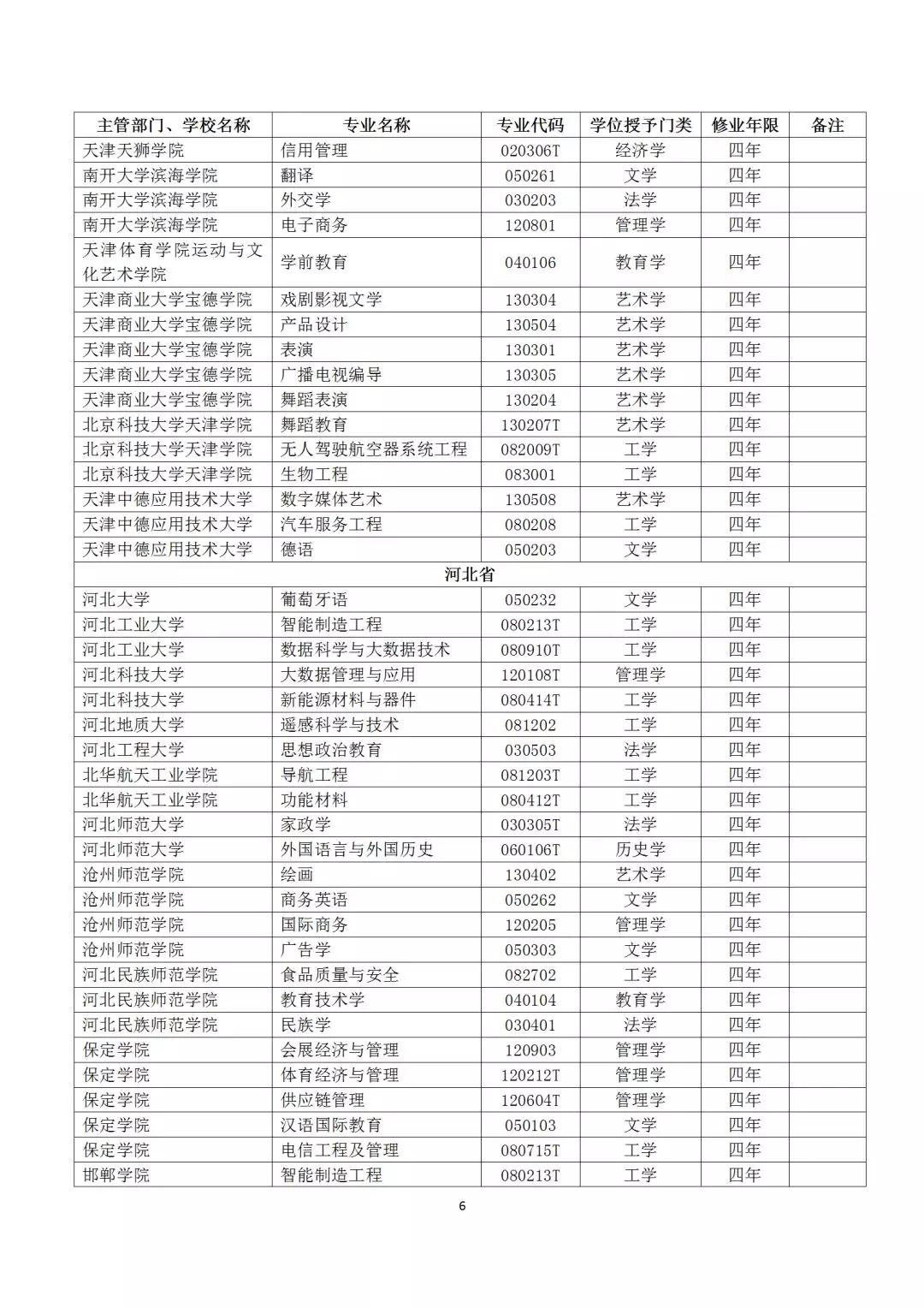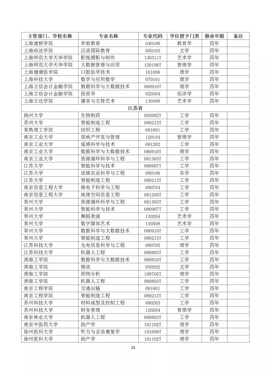 教育部公布2018年普通高校本科專業備案和審批結果的通知