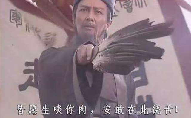今幸天意不絕炎漢,昭烈皇帝于西川繼承大統。我今奉嗣君之旨興師討賊,你既為諂諛之臣,只可潛身縮首,茍圖衣食,怎敢在我軍面前妄稱天數!皓首匹夫,蒼髯老賊,你即將命歸九泉之下,屆時有何顏面去見漢朝二十四代先帝!貳臣賊子,你枉活七十有六,一生未立寸功,只會搖唇鼓舌,助曹為虐!一條斷脊之犬,還敢在我軍陣前狺狺狂吠!我從未見過有如此厚顏無恥之人!”