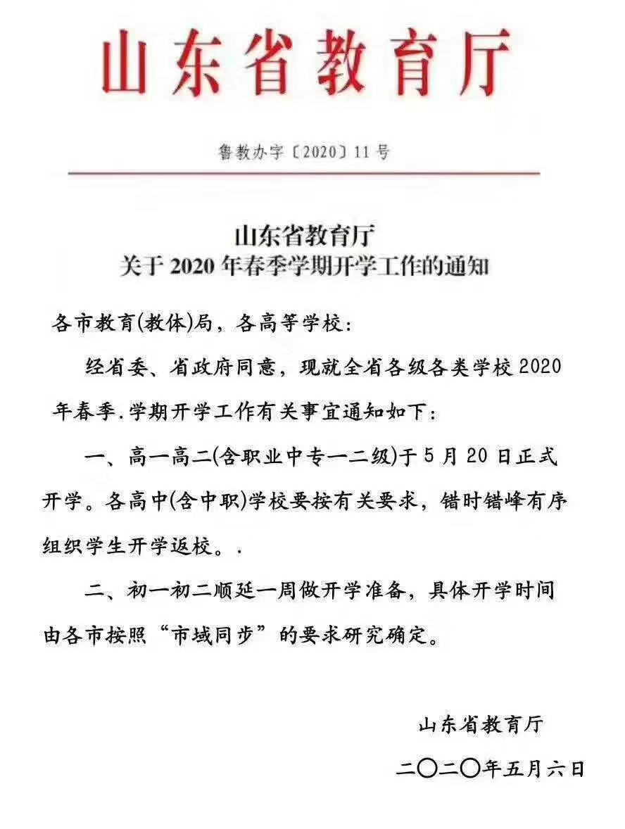 文章來(lái)源:山東省教育廳2020-05-07 17:10:00