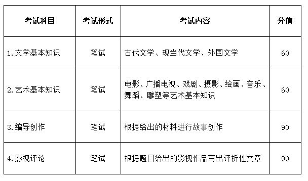 主要考查考生對該專業所涉及的電影、廣播電視、戲劇、攝影、繪畫、音樂、舞蹈、雕塑等藝術基本知識的掌握程度。