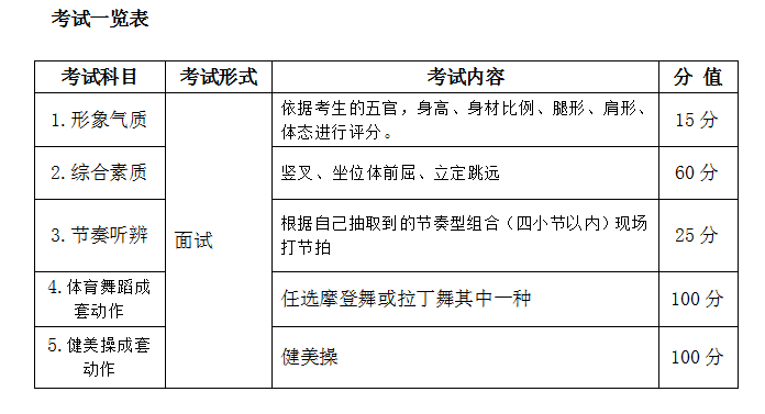 藝術(shù)專業(yè)全省統(tǒng)一考試是全國(guó)普通高考的重要組成部分。本統(tǒng)考模塊適用于本科表演(體育舞蹈、健美操),專科國(guó)際標(biāo)準(zhǔn)舞、體育藝術(shù)表演等專業(yè),主要測(cè)評(píng)考生學(xué)習(xí)體育舞蹈、健美操等應(yīng)具備的基本專業(yè)素質(zhì)和能力,為高校選拔提供基本依據(jù)。