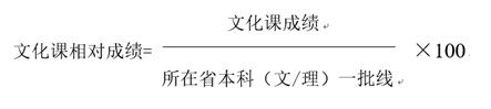 注:1、文化課相對成績=文化課成績÷所在省文史/理工類本科一批線×100