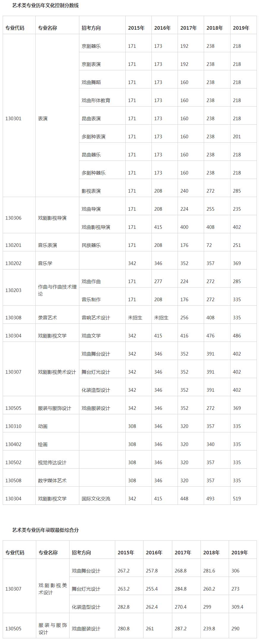 藝術類專業歷年文化控制分數線
