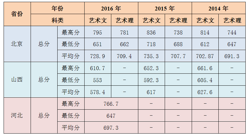 注:總分為高考文化課成績加藝術類統測成績(含附加分)。