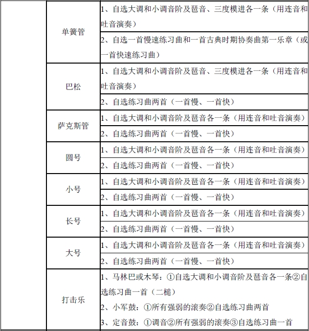 (三)學生入學后使用的樂器(除鋼琴、大件打擊樂器外)原則上由學生自備,確有困難者可向學校申請借用。