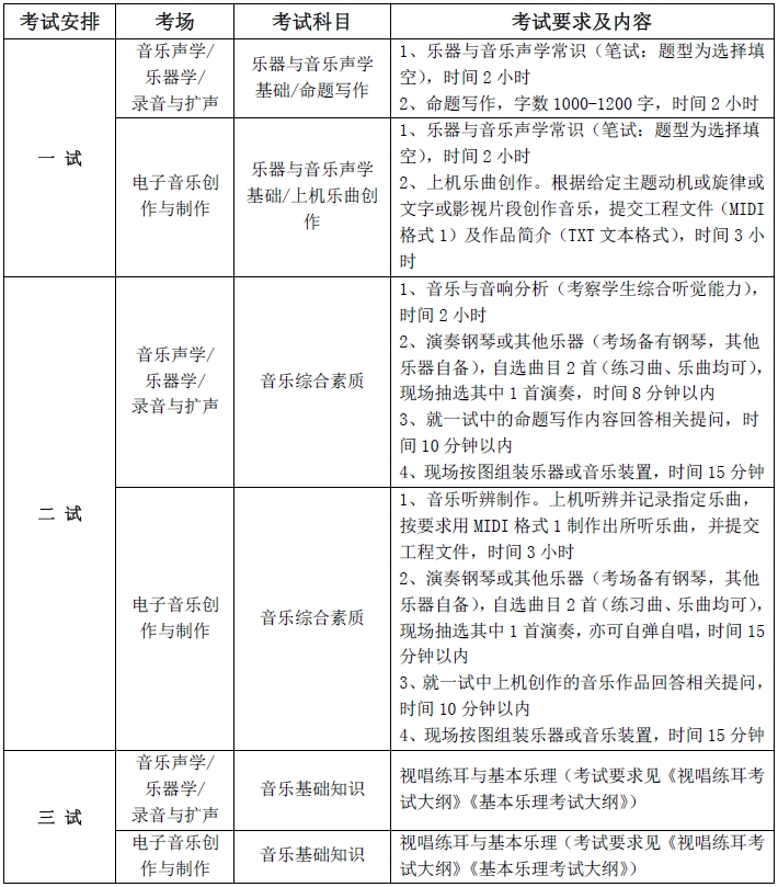 1、音樂學理論、音樂教育、音樂聲學/樂器學/錄音與擴聲、電子音樂創作與制作等招考方向:錄取分數線參照生源所在省(市、自治區)普通本科第一批次錄取控制分數線的70%劃定。