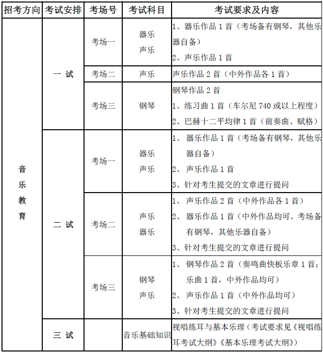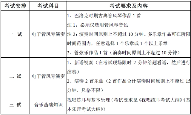 4、演唱(民族唱法)、演唱(美聲唱法)、中國樂器演奏、鋼琴、電子管風琴、管弦樂器演奏等招考方向:錄取分數線參照生源所在省(市、自治區)藝術類同科類本科專業錄取控制分數線劃定。