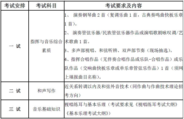 1、作曲系招收具有良好音樂基礎與潛質的考生。作曲系設有作曲、電子音樂作曲、視唱練耳、作曲技術理論等專業方向。前兩年統一必修作曲與作曲技術理論方面的專業基礎課程,學生還可根據自身發展選修相關專業課程。第三學年對作曲、電子音樂作曲、視唱練耳專業方向進行正式專業選擇;第四學年還可選作曲技術理論專業方向。