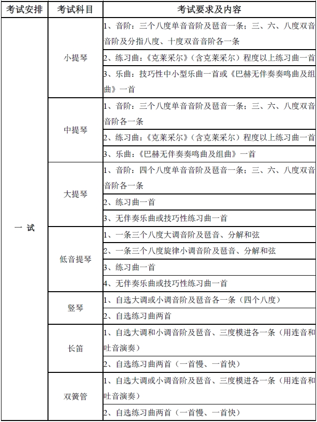 4、管弦樂器演奏招考方向招生計劃分配如下: