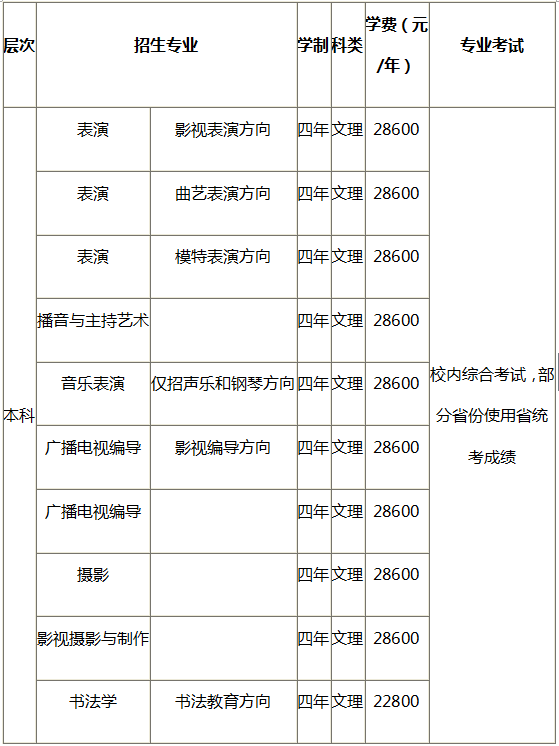 •報名考試費:廣播電視編導、書法學(書法教育方向)專業初、復試一次性繳納報名費180元;其他專業初試報名費100元,復試費80元。