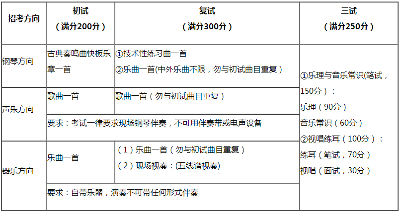 說明:(1)考試曲目以網上報名所填報的曲目為準,現場考試時不得自行更改。(2)考生如缺考上述任何一項考試,將取消合格資格。