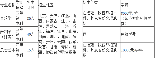 4.我校音樂(lè)學(xué)院音樂(lè)學(xué)和舞蹈學(xué)(師范)專業(yè)在福建、陜西兩省只招收文科生,錄音藝術(shù)專業(yè)在此兩省只招收理科生;其他招生省份文理兼招,統(tǒng)一排隊(duì)。