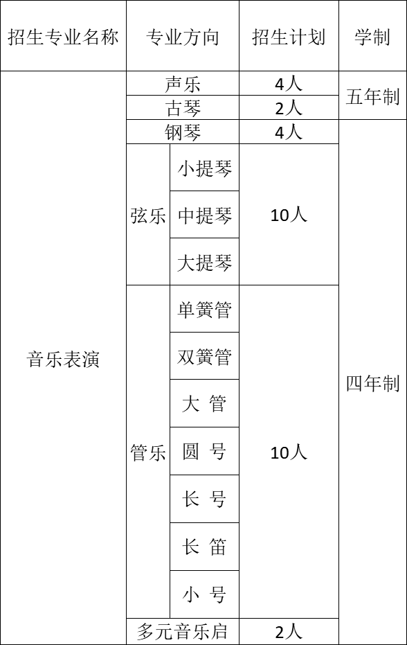 1.音樂表演專業招生不做分省計劃。專業測試結束后,學??筛鶕嶋H生源情況調整各專業方向招生計劃并認定合格生,寧缺毋濫。