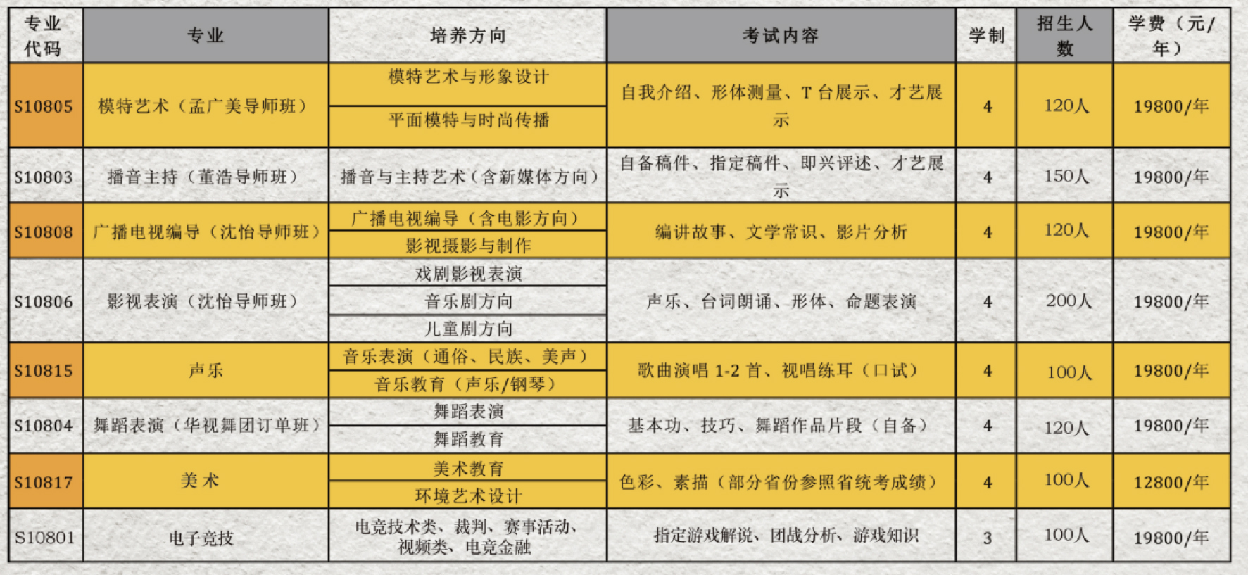 考試科目:1,自備稿件20分;2、指定稿件30分;3,即興評述40分,4,才藝展示10分。3、廣播電視編導(沈怡導師班)(面試或者筆試)