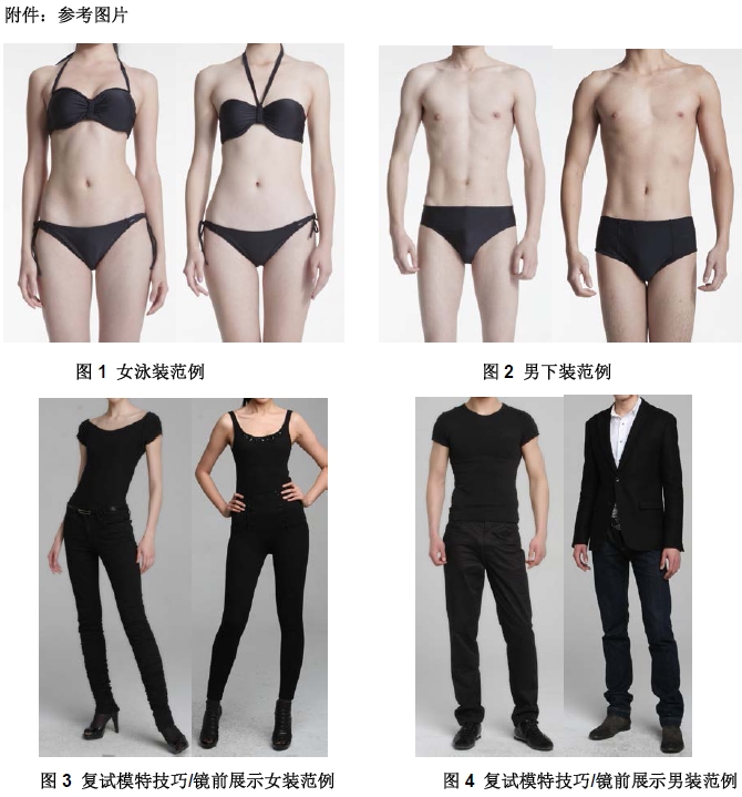 為了體現考試的公正、公平, 2018 年表演(服裝表演/廣告傳播)專業各項考試 中,要求考生必須遵照下列著裝要求提前準備,并按要求在考試不同環節進行著裝, 所有服裝表面除了有不可避免的品牌 LOGO 外,要求不得有其他任何裝飾物,包括滾邊、 印花圖案等,嚴禁考生穿著培訓機構(學校)發放的服裝參加考試。