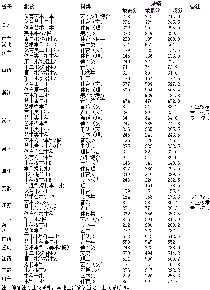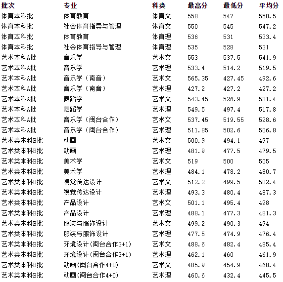 2016年泉州師范學院年面向福建藝體類錄取分數統計2016年泉州師范學院省外藝術體育類錄取成績統計