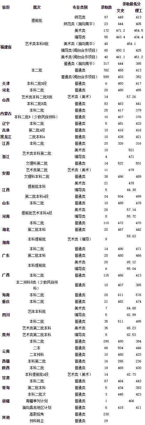 武夷學院2016年各省各批次錄取最低分及錄取進程公告