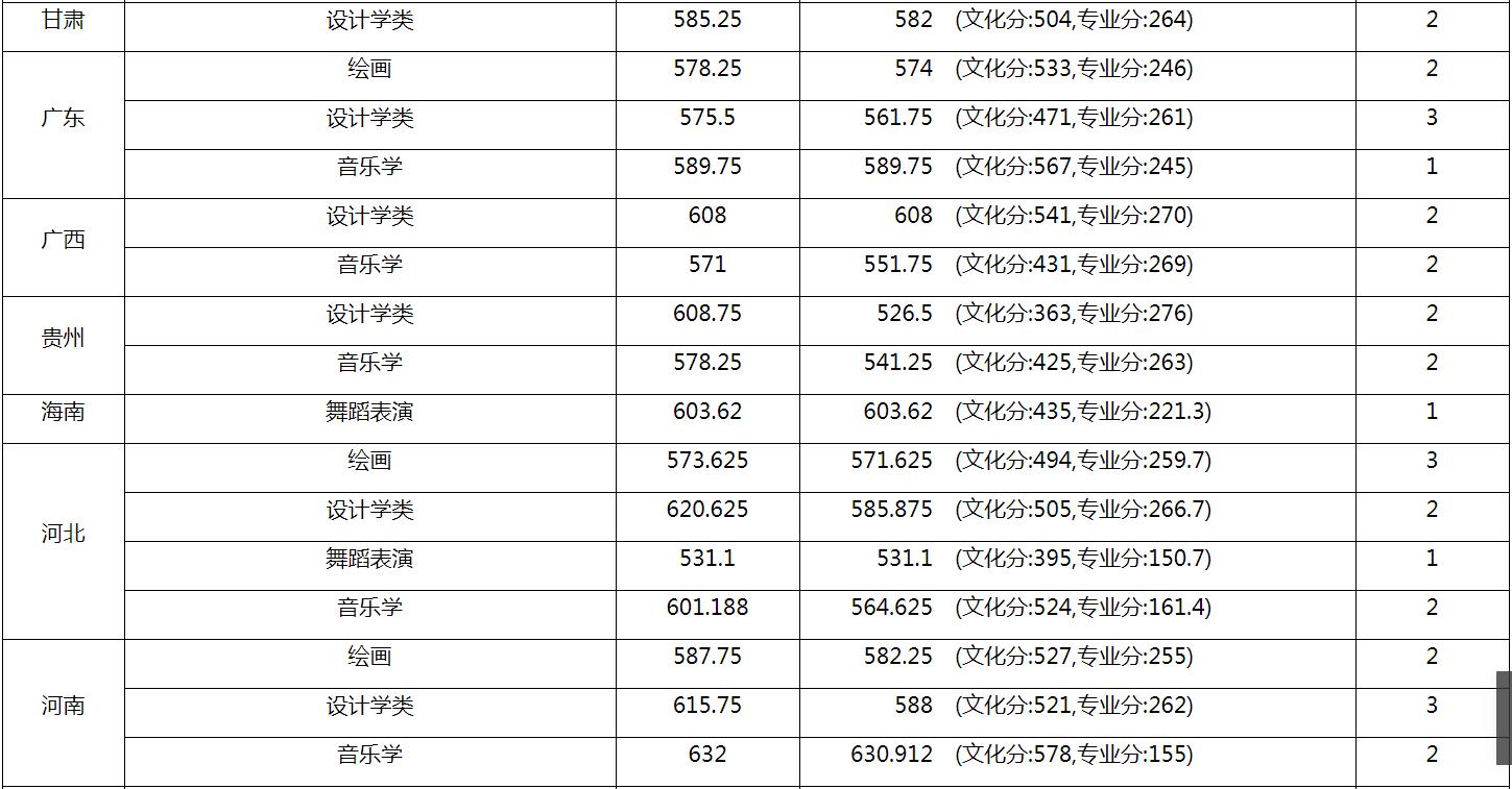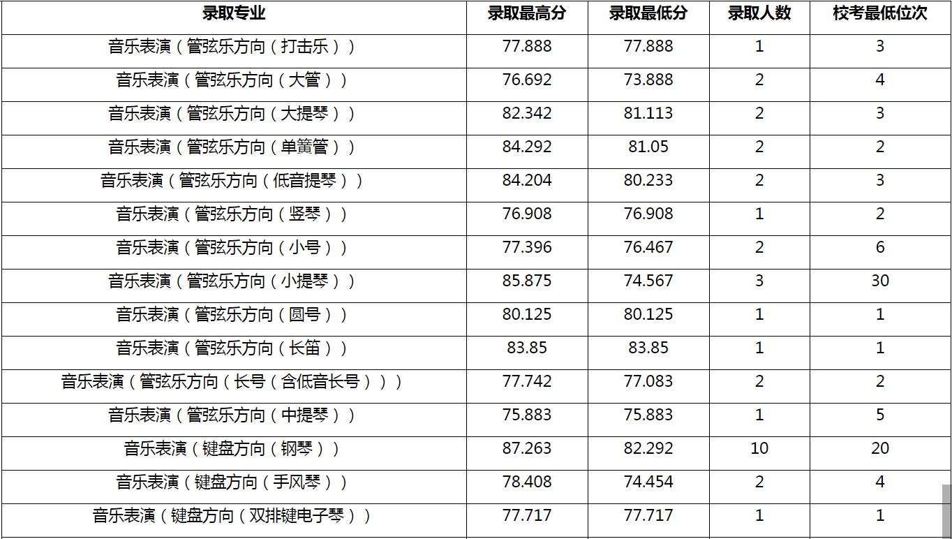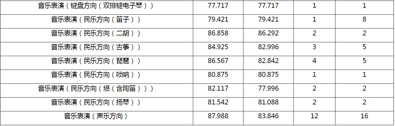 1.音樂表演專業(yè)錄取分?jǐn)?shù)為專業(yè)校考成績,藝術(shù)教育(美術(shù)教育方向)為文化成績,其余均為考生綜合分。