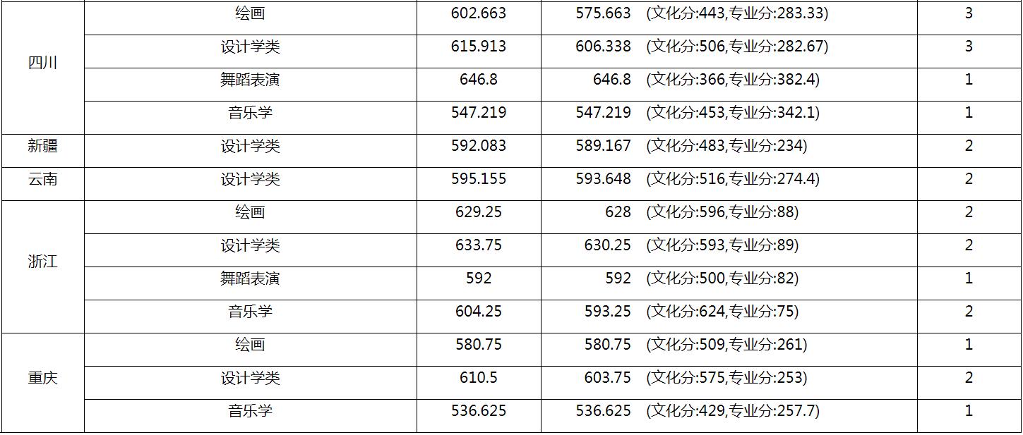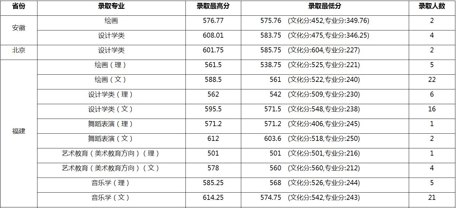 廈門大學(xué)2019年本科藝術(shù)類各專業(yè)錄取分?jǐn)?shù)統(tǒng)計表