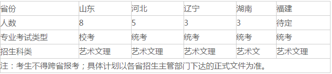 2.河北省只招收器樂演奏(民族器樂或西洋管弦樂)考生,遼寧省只招收聲樂演唱(美聲或民族唱法)考生。
