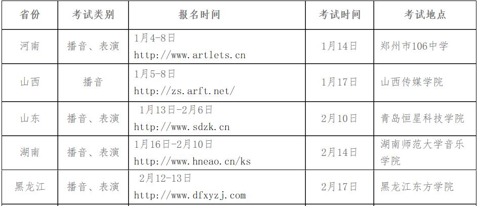3.表演、播音與主持藝術(shù)等兩個專業(yè)采用校考成績,校考省份及考點安排詳見下表。