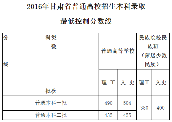 2016年甘肅省普通高校招生中職生本科二批錄取
