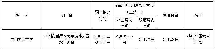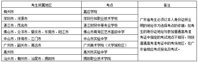 2、我校各美術類校考專業(除美術學專業、書法學專業)在廣東省內設有八個考點組織考試,考點安排如下: