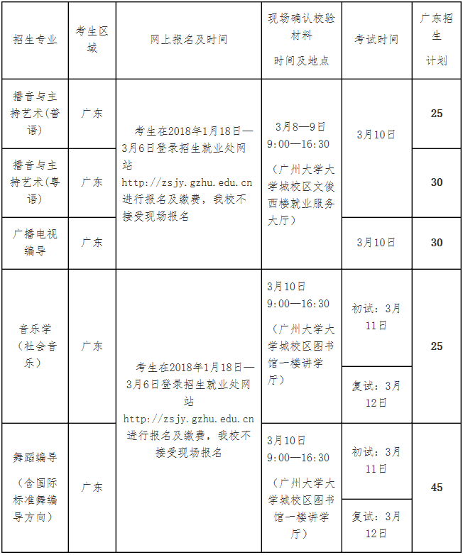 廣州大學(xué)2018年藝術(shù)類專業(yè)校考招生簡章