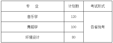 備注:以上為我校藝術類擬招生專業、計劃數,分省區最終招生專業、計劃數以各省教育行政部門公布的招生專業目錄為準。