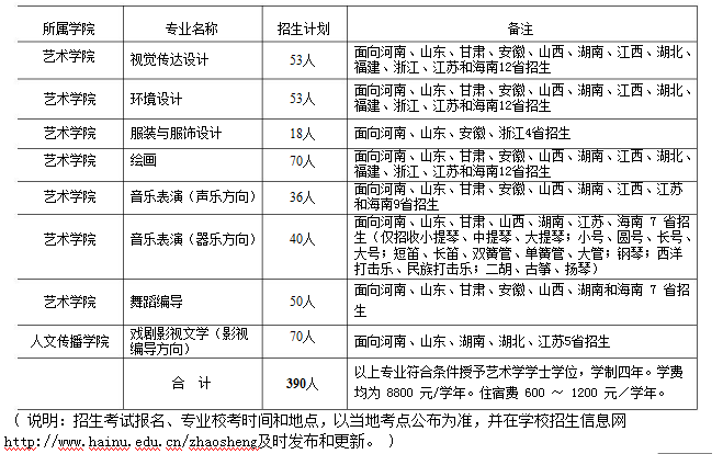 3.海南省實行院校平行志愿投檔,考生需參加海南省藝術專業統考并合格,對同一輪投檔的考生,按照海南省藝術專業統考成績從高分到低分錄取。
