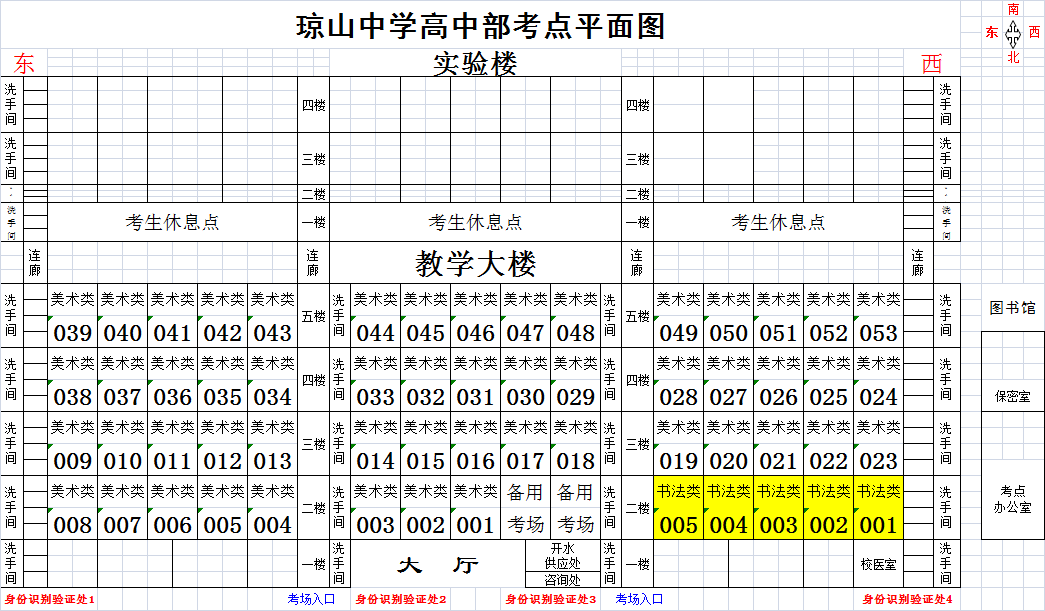 瓊山中學高中部考場安排示意圖