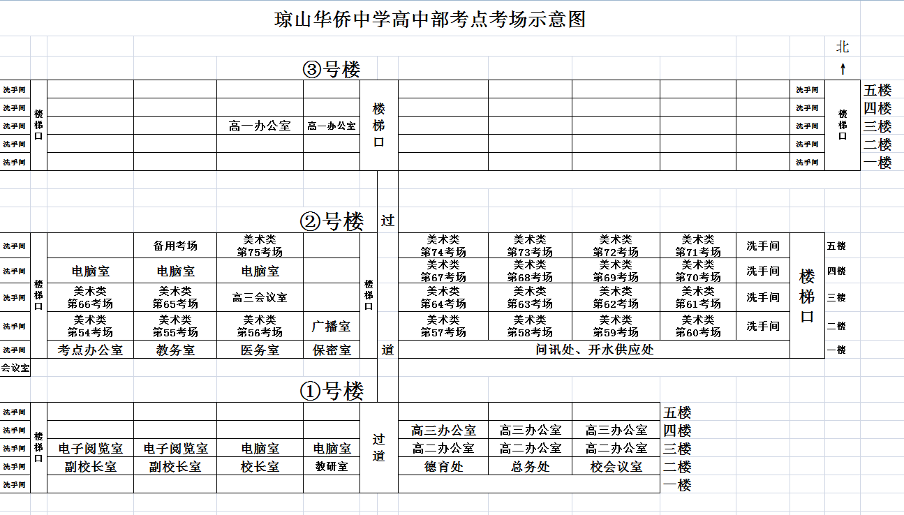 瓊山華僑中學高中部考場安排示意圖