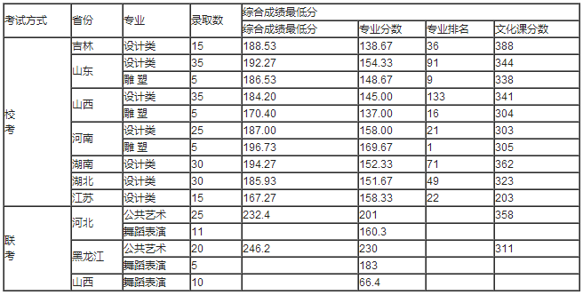 2、對(duì)于使用聯(lián)考成績(jī)的省份,公共藝術(shù)專業(yè)按“高考文化課成績(jī)*20%+省統(tǒng)考專業(yè)成績(jī)*80%”的總成績(jī)擇優(yōu)錄取;舞蹈表演專業(yè)按考生統(tǒng)考專業(yè)成績(jī)擇優(yōu)錄取。