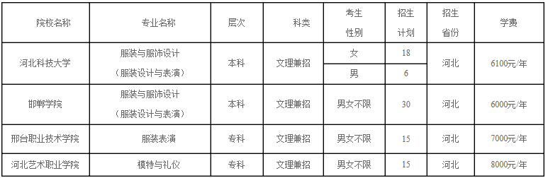 3、河北科技大學(xué)、邯鄲學(xué)院本科要求女生凈身高1.70米及以上,男生凈身高1.80米及以上;專科院校要求女生凈身高1.65米及以上,男生凈身高1.80米及以上;身體健康,五官端正,形體勻稱,氣質(zhì)佳,有一定的音樂、舞蹈或其他表演基礎(chǔ),符合模特基本條件。