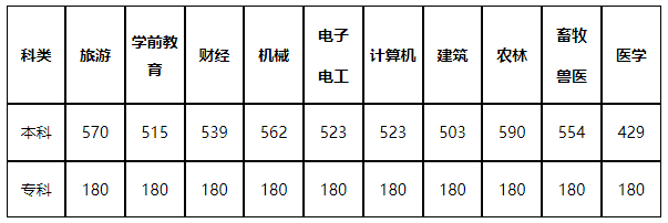 注:以上專業分為我省相應科類專業聯考合格線