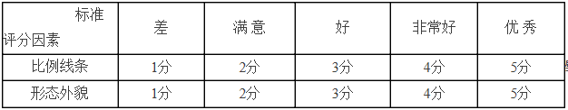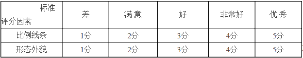1.形象氣質:考評員目測考生身體各部分比例與線條,包括形態、外貌、氣質、體重、身高。依據身材勻稱,線條優美,五官端正,三長一小的標準及面部形象進行綜合評定;共10分