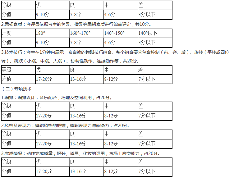 4.舞蹈含民族舞、古典舞、現代舞測試標準參見中國舞測試標準