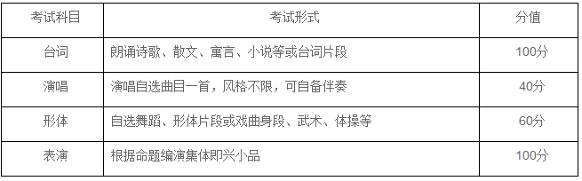 三等 | 60—74分 | 審題和表演主題不明確;在特定情境中組織行為動作能力一般;表演狀態松弛、靈活程度一般;人物形象感一般;應變能力一般 |