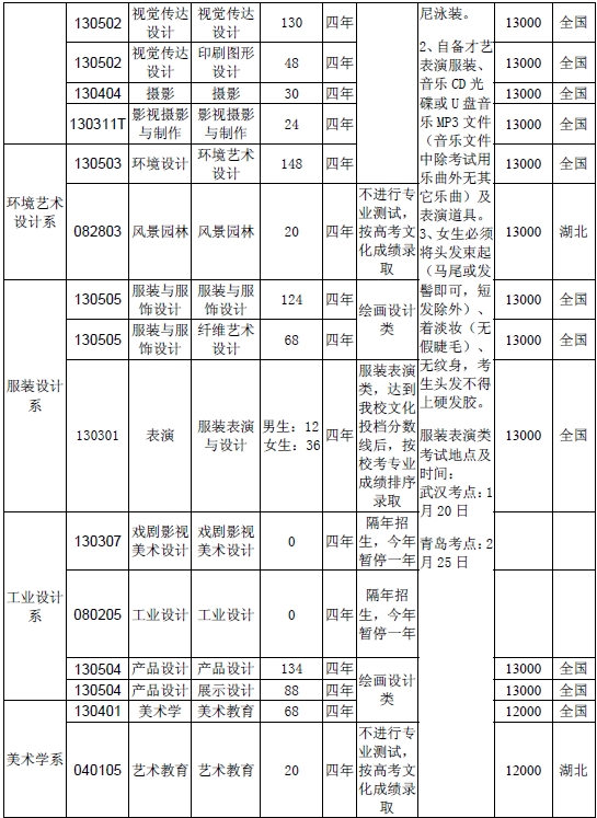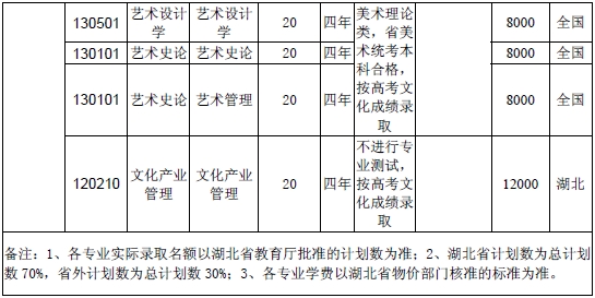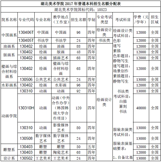 湖北美術學院 2017年普通本科招生章程