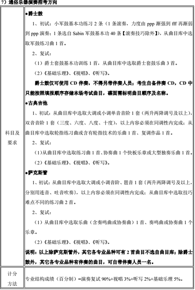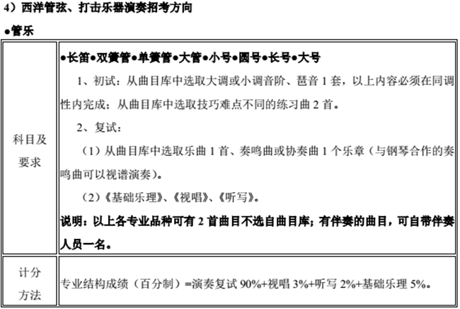 3、報考演奏招考方向的考生入學后樂器一律自備(鋼琴除外)。