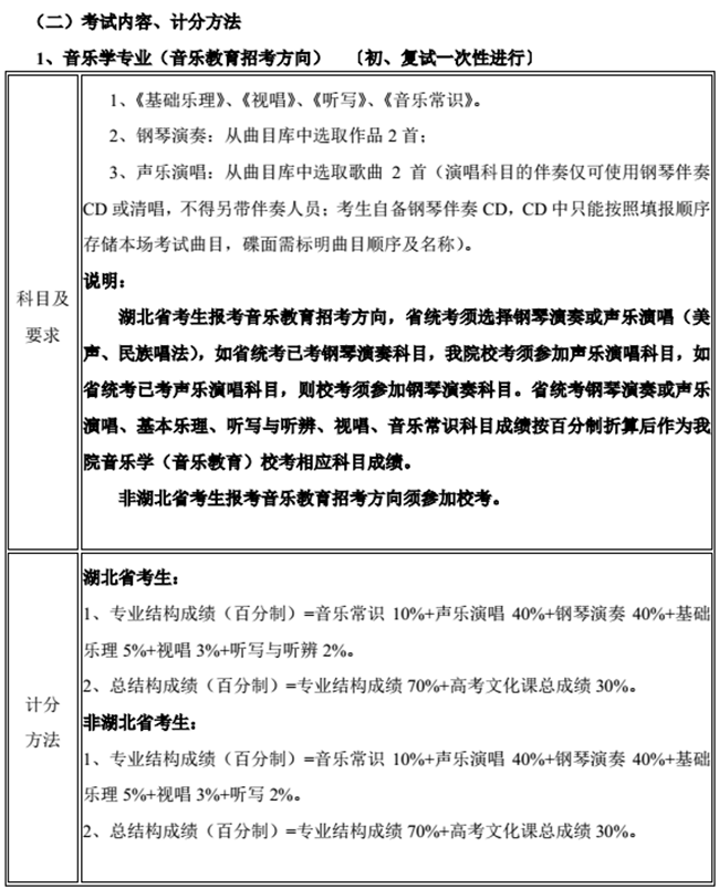 ①湖北省考生的省統考成績必須達到 2018年湖北省音樂學類、舞蹈學類統考合格線方可報考我院相應類別專業。