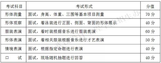 2.表演(服飾表演與推廣)專業(yè)考試科目及分值(總分300分)